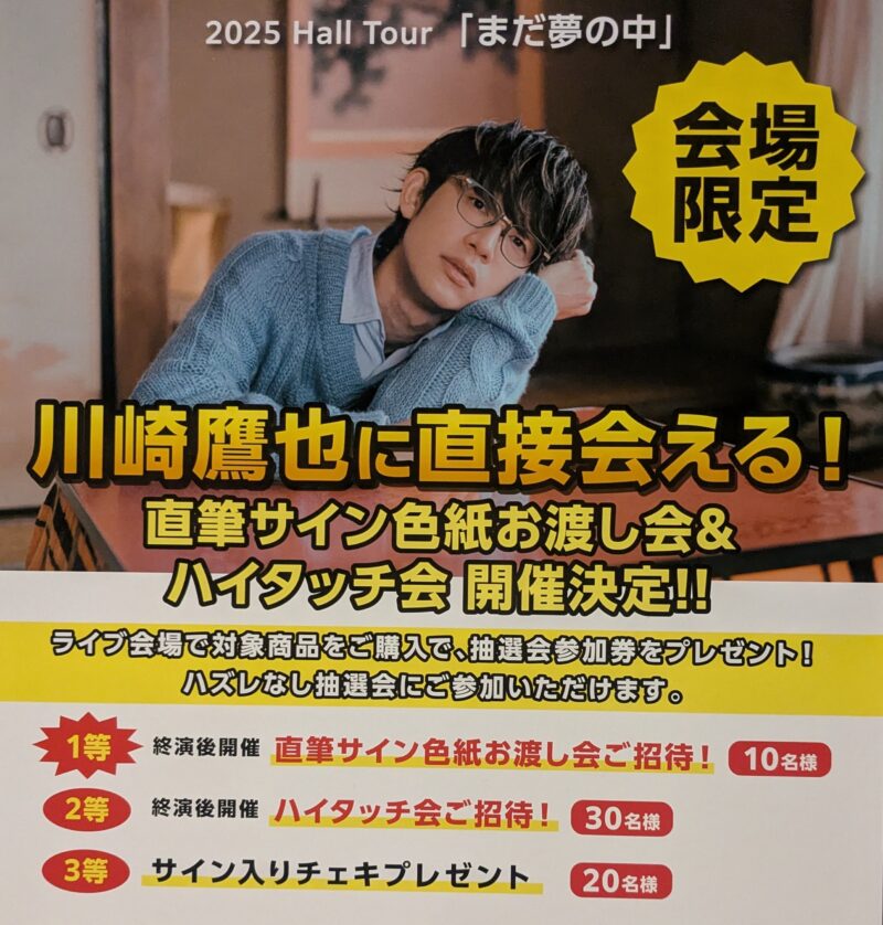 2025年8月22日(金)、東京国際フォーラムのホールA(最大座席数5,012席)にて川崎鷹也(かわさきたかや)さんのライブがありました。Holl Tour 2025「まだ夢の中」と称して、香川を皮切りに、全国13ホールでライブ公演中です。
