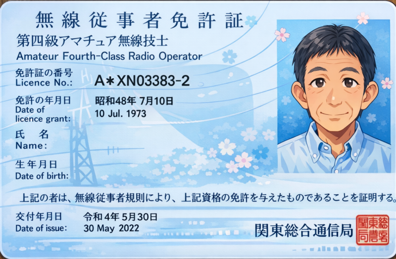 そして、11歳のとき、アマチュア無線の免許を取得するために通信教育を受け始めます。毎日コツコツと6カ月勉強して昭和48年7月に電話級アマチュア無線技士の資格をとることができました。