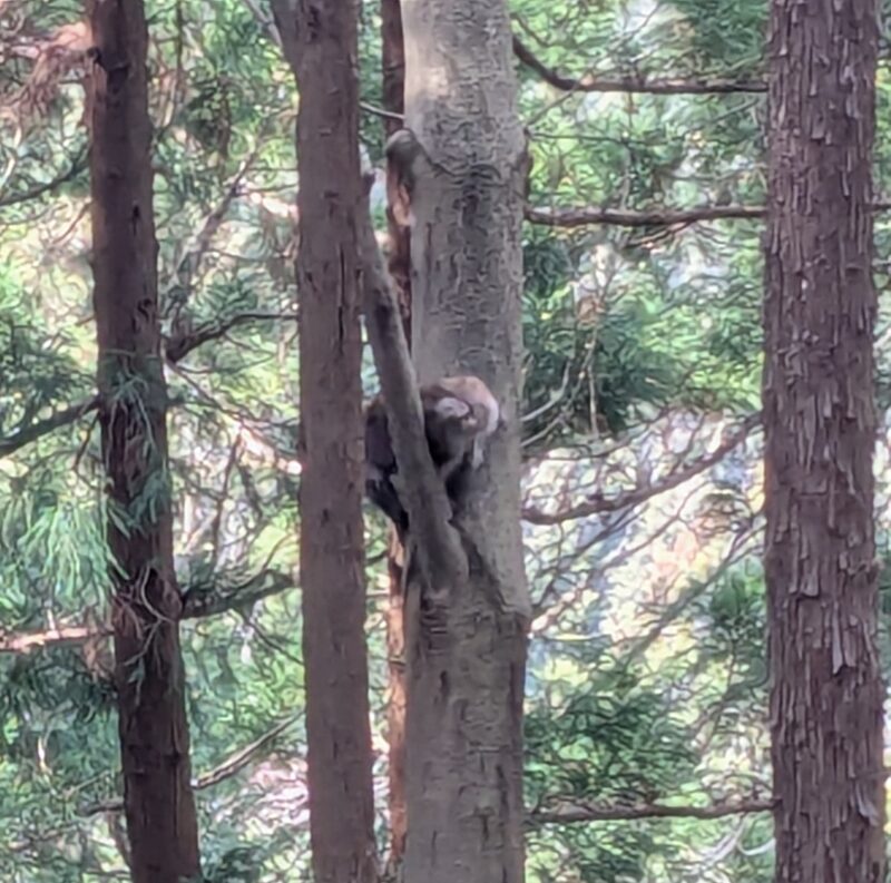 本丸の社の横に、天狗像があったはずですが、脇の木に登っている野生の猿を発見してしまい、(全部で4頭)それを2組の登山者に伝えているうちに天狗様のことを忘れてしまいました。