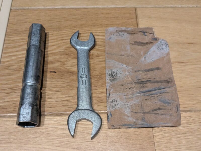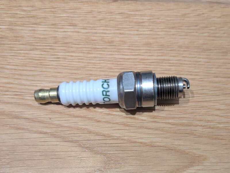 新品のスパークプラグがありましたので、入れ替える作業をしました。ガソリンがからみついて黒くなったスパークプラグも一応磨いて次の故障用にとっておくことにしました。