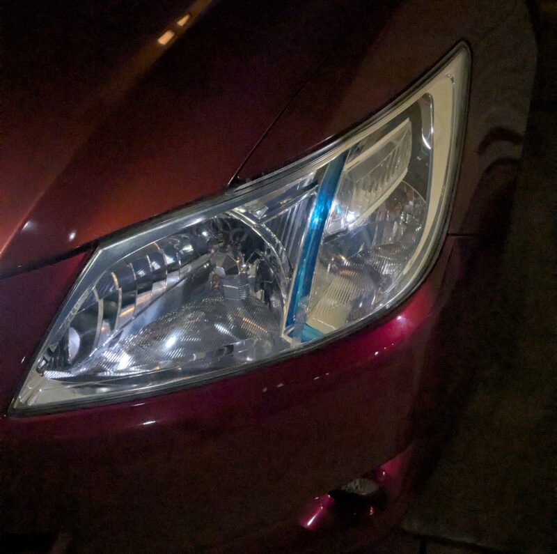 昨日は知人がフロントライトのレンズ(ポリカーボネート樹脂)をピカピカに磨いてくれました。左右ともに見違えるように透明になりました。