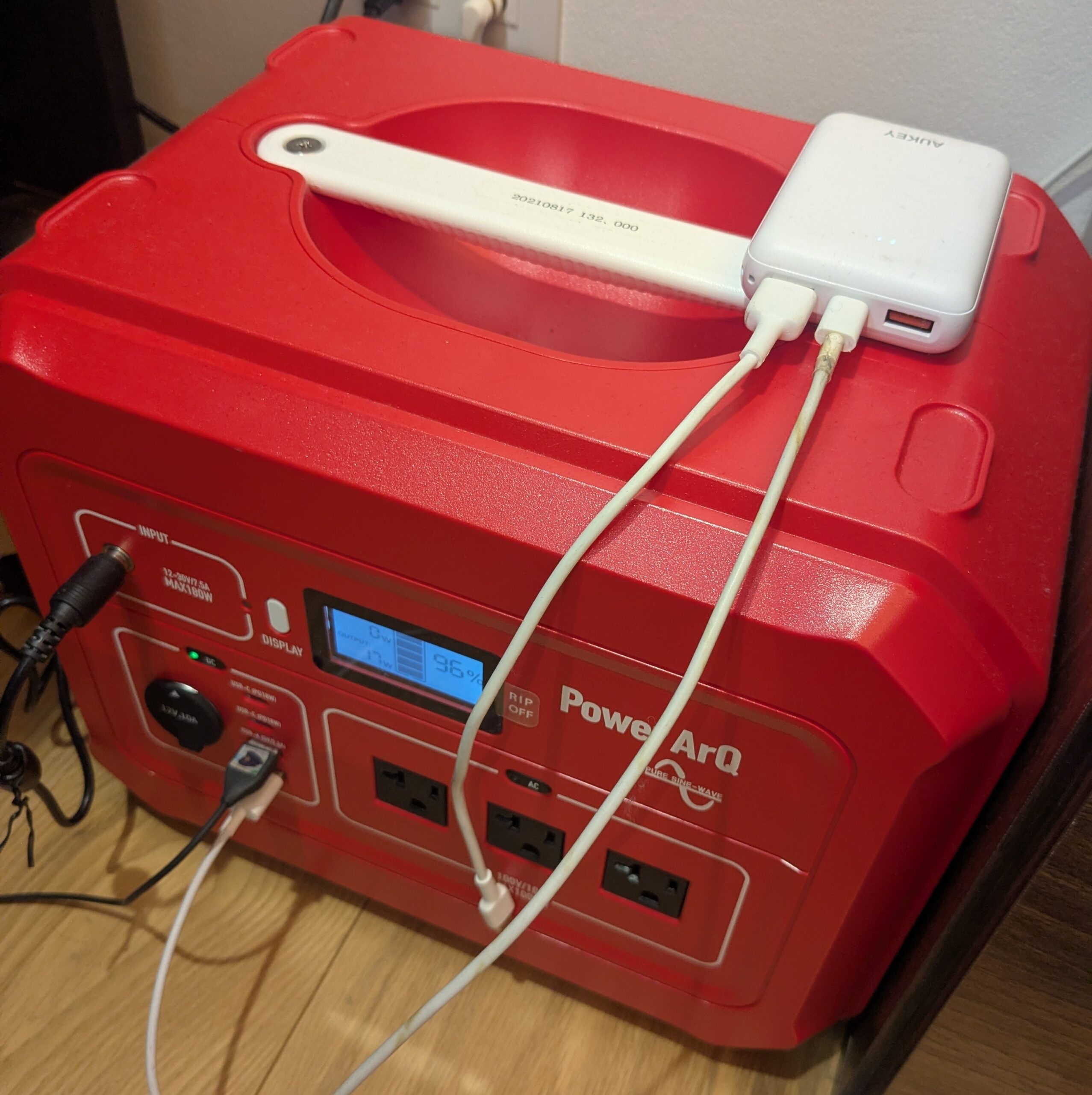 そうすると、接続方法とか、充電時間とか、バッテリーの減り方などもつかめるようになりました。ポータブル電源は充電が80%を切ったらコンセントから充電するようにしています。